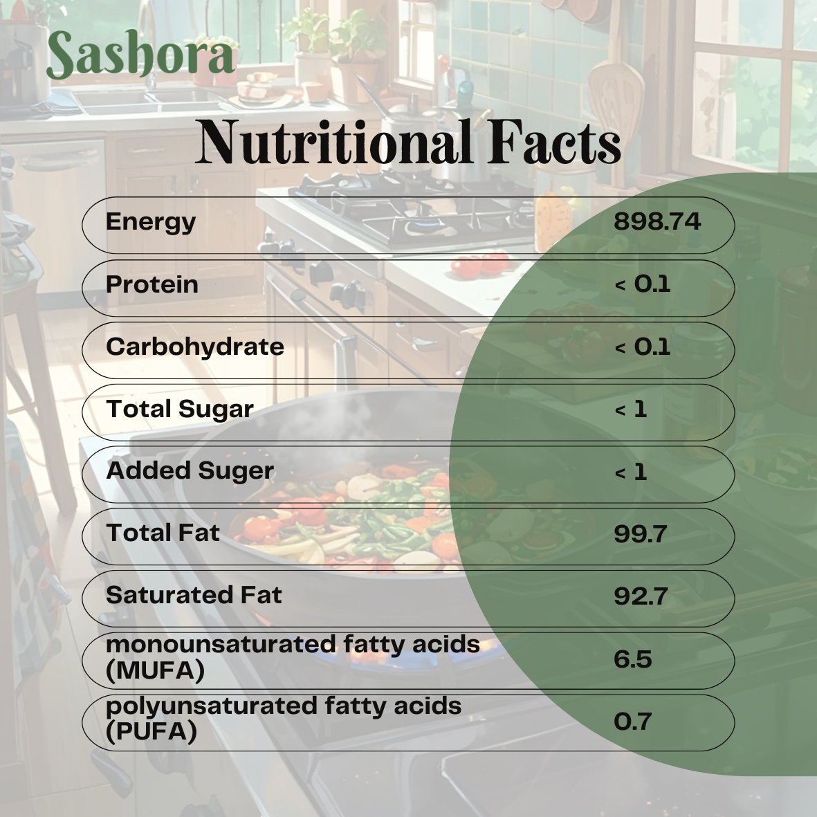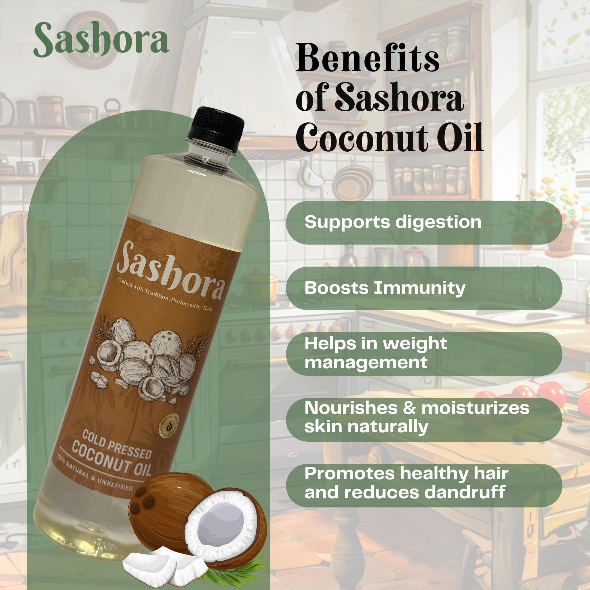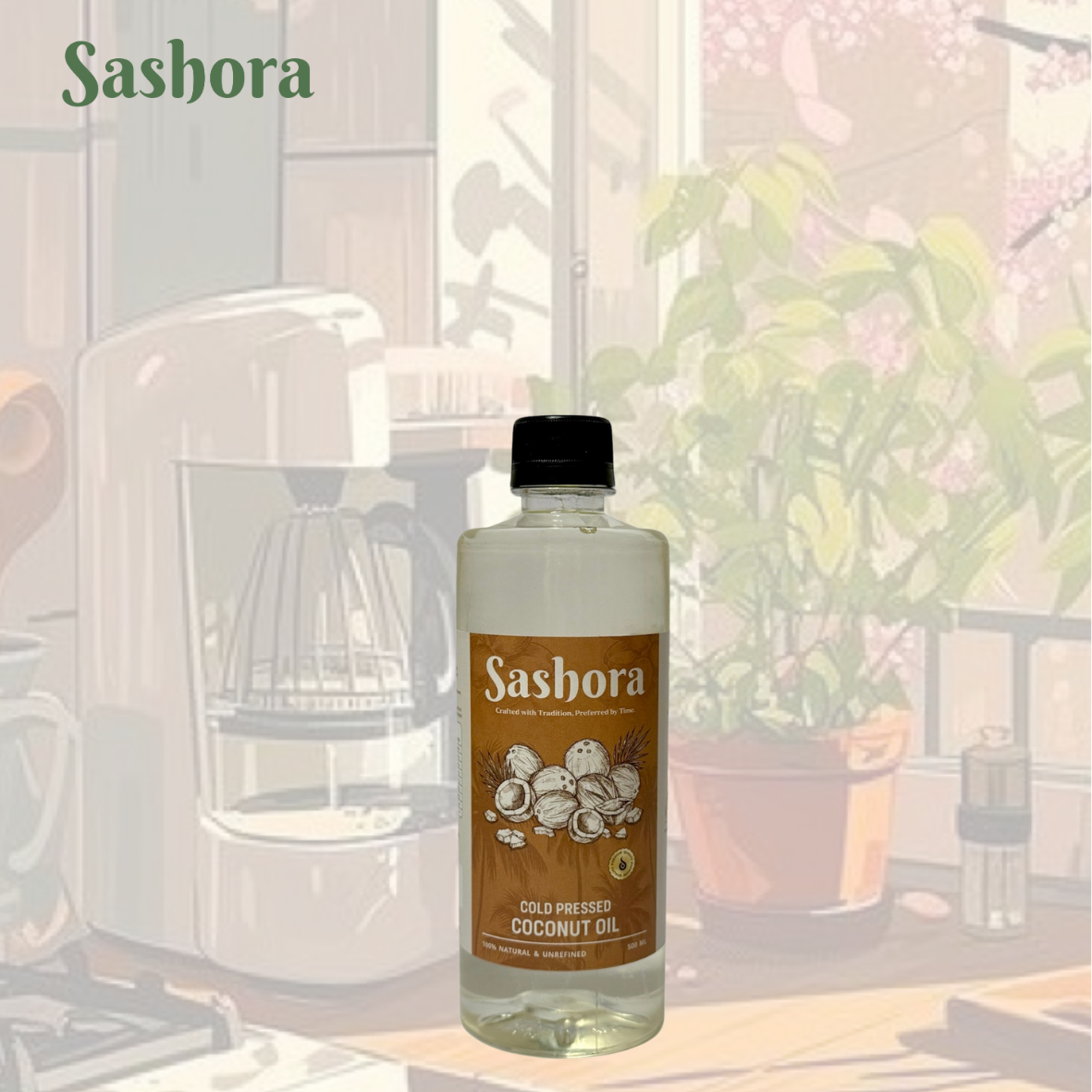 Experience the pure essence of nature with our 100% natural SASHORA coconut oil, extracted from fresh coconuts without heat or chemicals. Our traditional cold-pressing method retains the oil’s essential nutrients, natural aroma, and rich flavour making it a perfect choice for cooking, skincare and hair care.