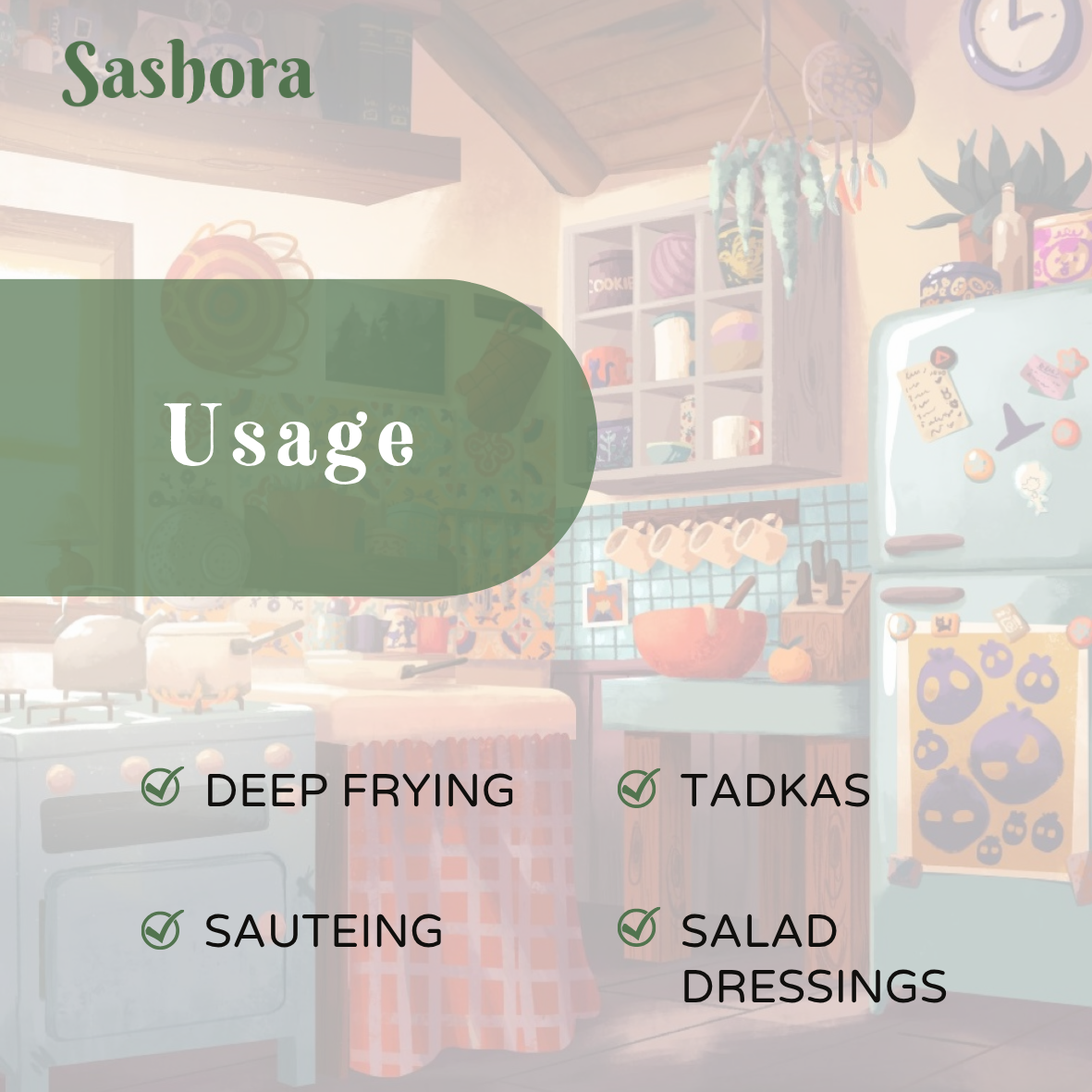 Whether you're cooking daily meals, making baby food or lighting your pooja lamp, Sashora is the pure choice your home deserves.